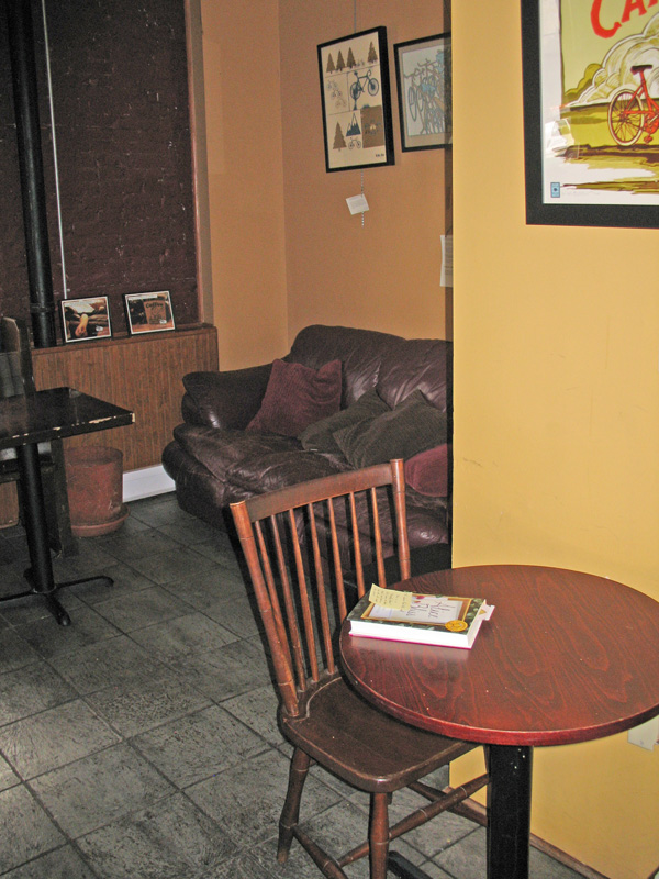 For those who are totally mystified: Alice Bliss, by Laura Harrington, is a “travelling book” that I reviewed in my previous post. My copy is now poised to travel along with anyone else who adopts it. It’s a cool novel, with a winning protagonist, so I hope it/she finds a new home soon. The coffee shop staff has been alerted to assist her in her quest.
